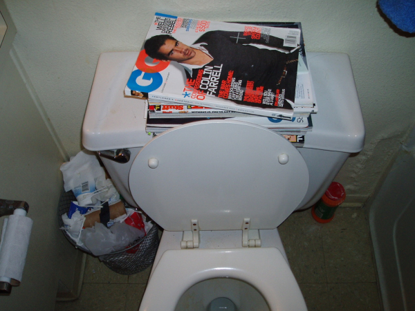 my roommate leaves magazines on top of the toilet. every morning when i go to the bathroom to fire my morning wood, i have to deal with that kinda thing. just look!!